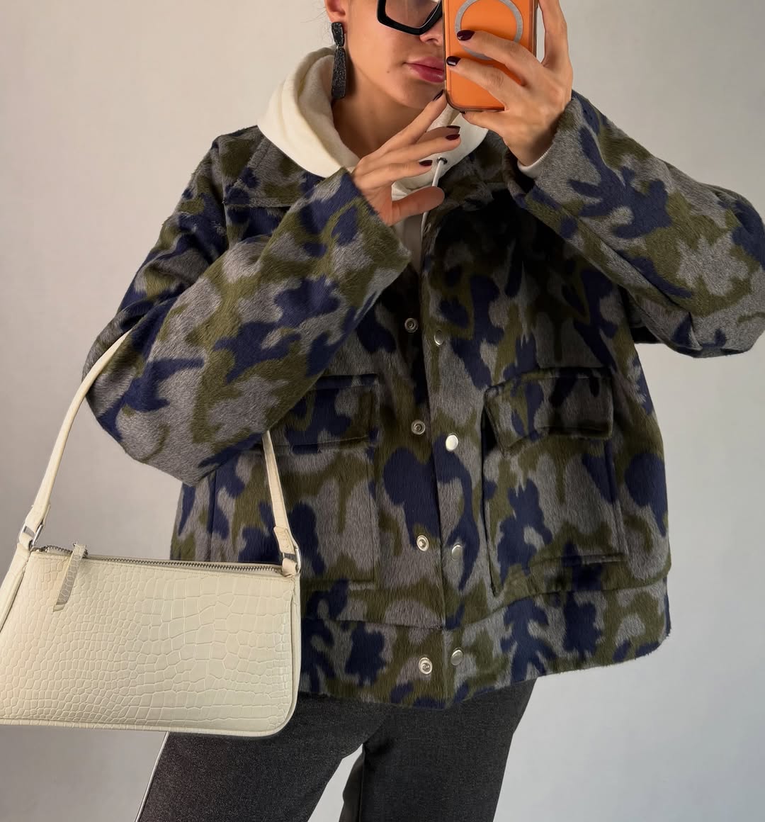 کت نیکا ارتشی طوسی سورمهای و کرم قهوهای فریسایز